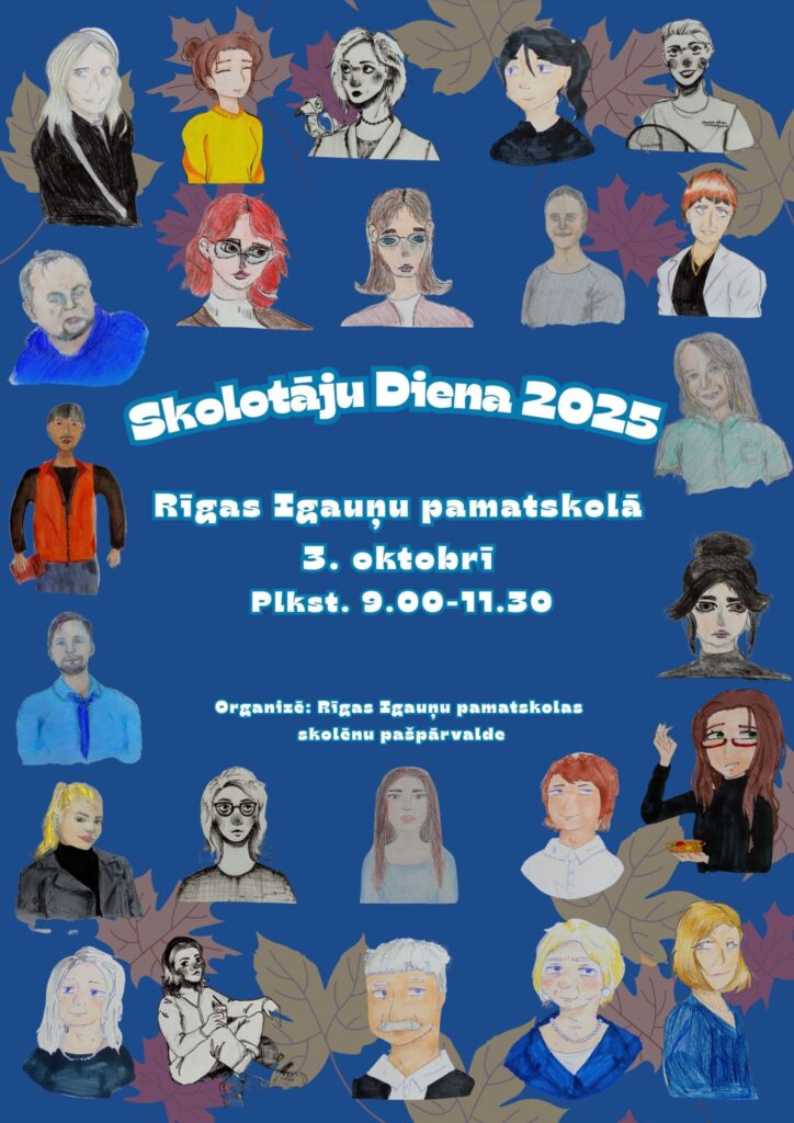 Šoreiz pateicība ir arī mākslā – afišu svētkiem radījuši paši skolēni, zīmējot mūsu skolotājus savā skatījumā. 🎨
