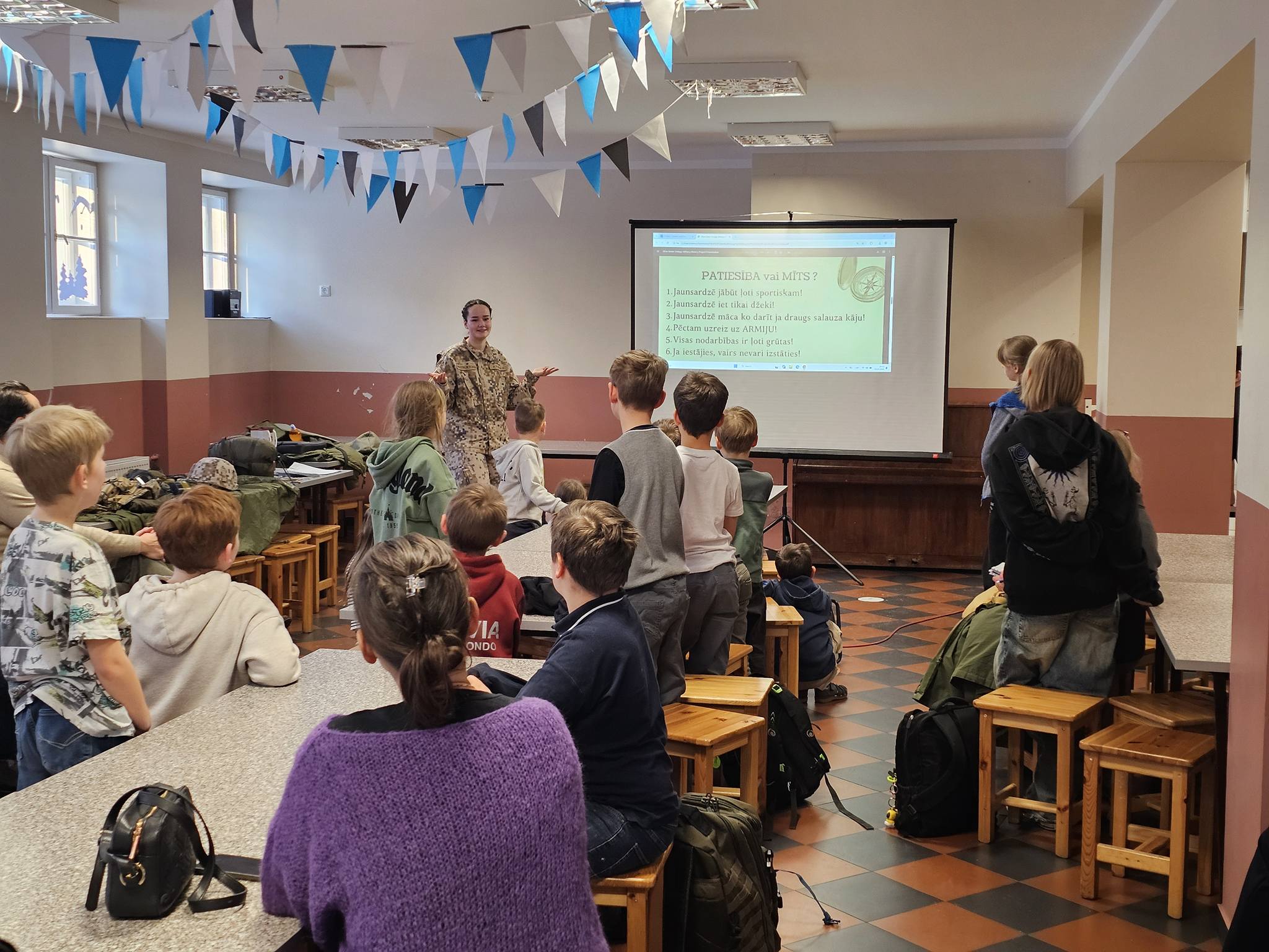 Otrdien, 3. februārī, notika ievadnodarbība Jaunsardzes pulciņam Rīgas Igauņu pamatskolā. Tajā interesenti – skolēni, vecāki un skolotāji – varēja iepazīties ar plānoto nodarbību programmu, aktivitātēm un inventāru.