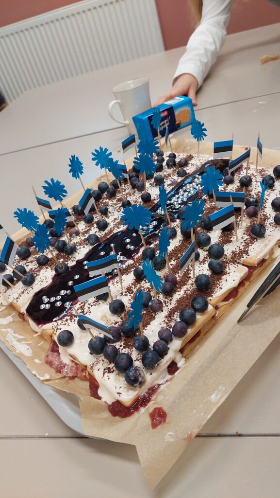 Šodien svinējām Igaunijas dzimšanas dienu! Klasēs taisījām kūkas, piedalījāmies viktorīnā un kopīgā skolas lasīšanas uzdevumā.